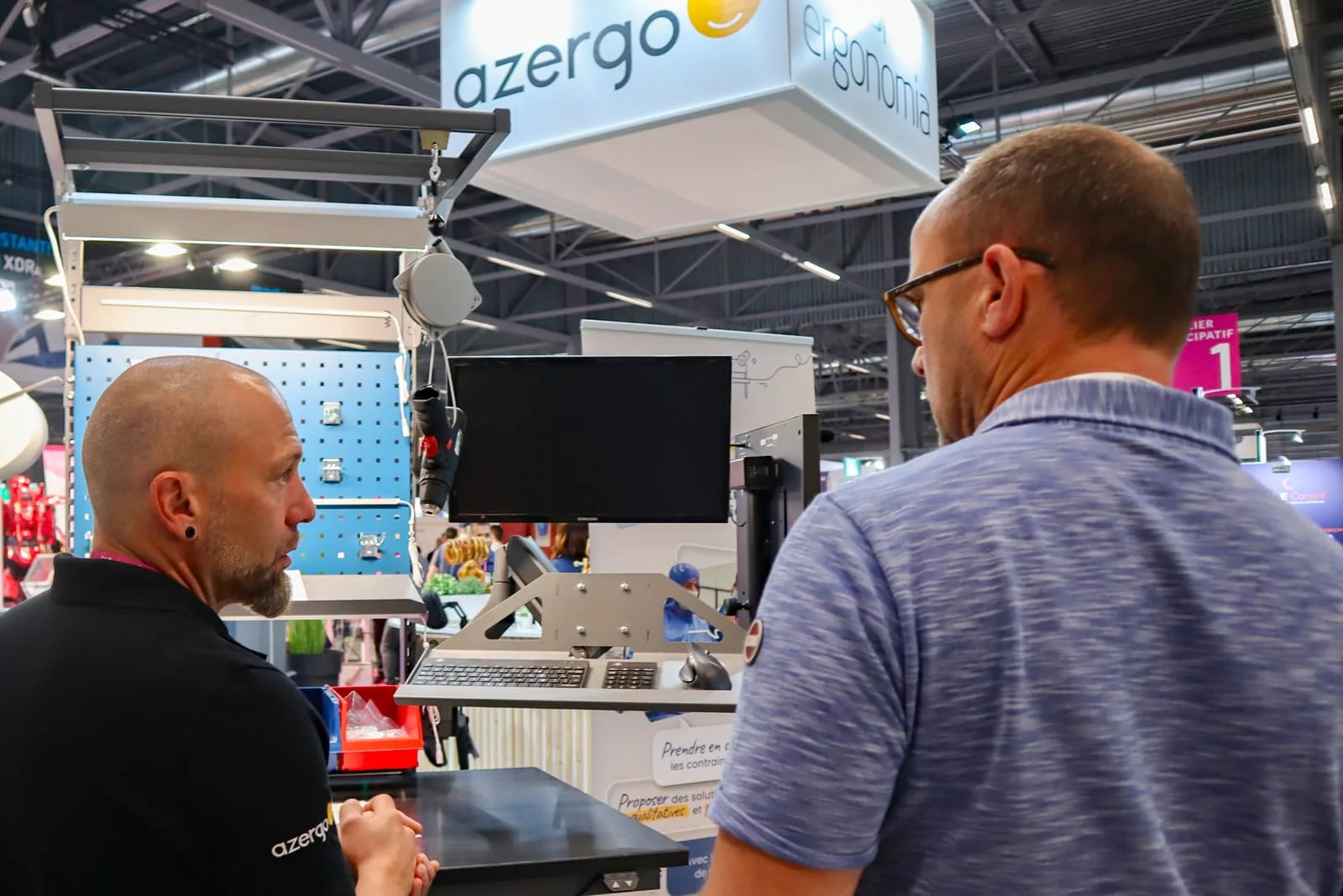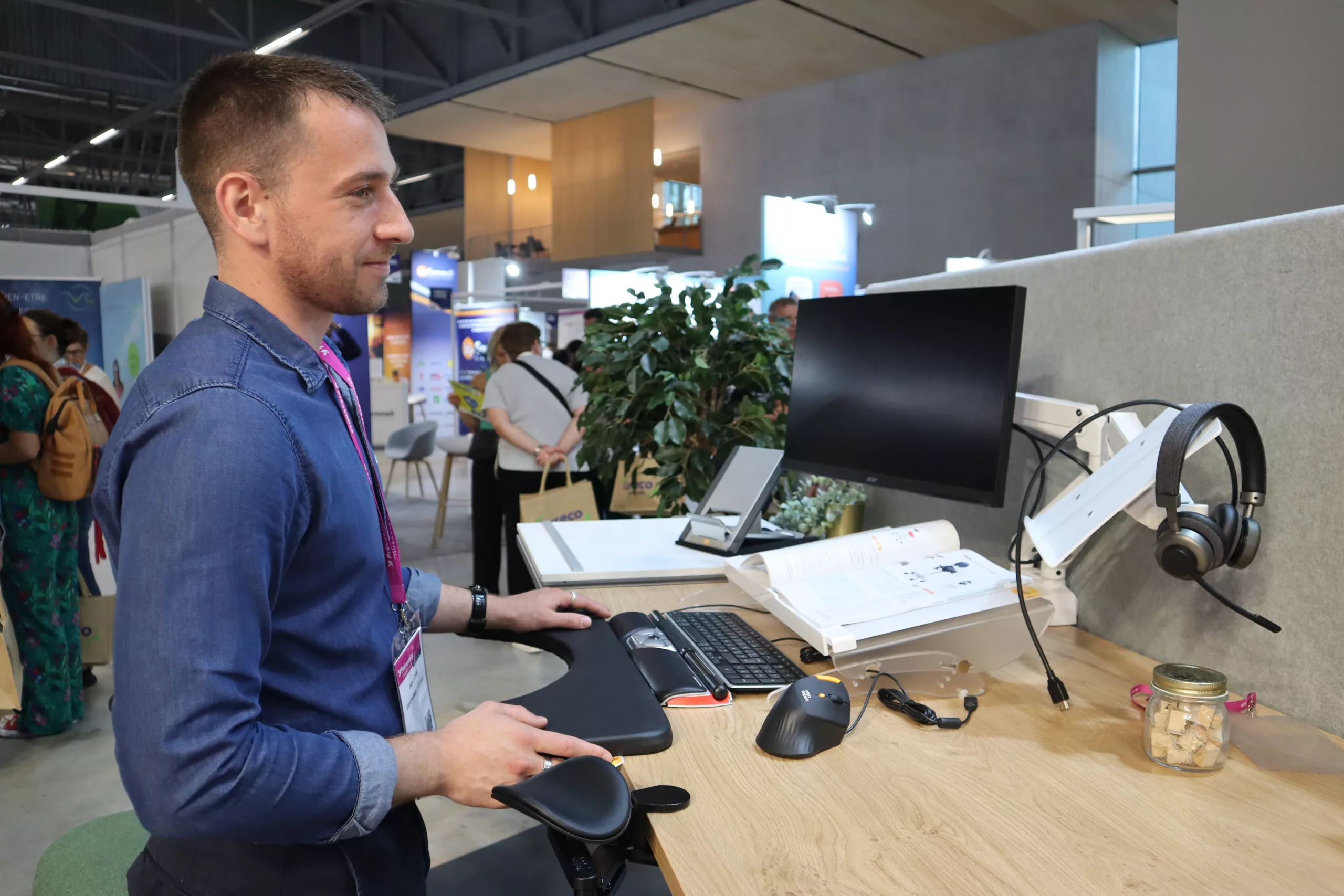 Sur notre stand, vous avez pu découvrir et tester nos solutions ergonomiques dédiées aux espaces de travail, accompagnés de nos conseillers spécialisés en aménagement de poste de travail ergonomique.