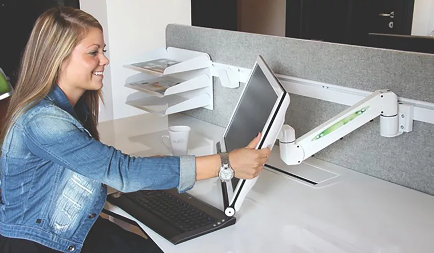 Le réglage de la hauteur est un élément primordial pour la prévention des TMS et fatigue visuelle liés au travail sur poste informatique. Privilégiez l’installation d’un bras support écran qui permettra de façon simple et rapide de régler votre écran à la fois en hauteur, mais également en profondeur.