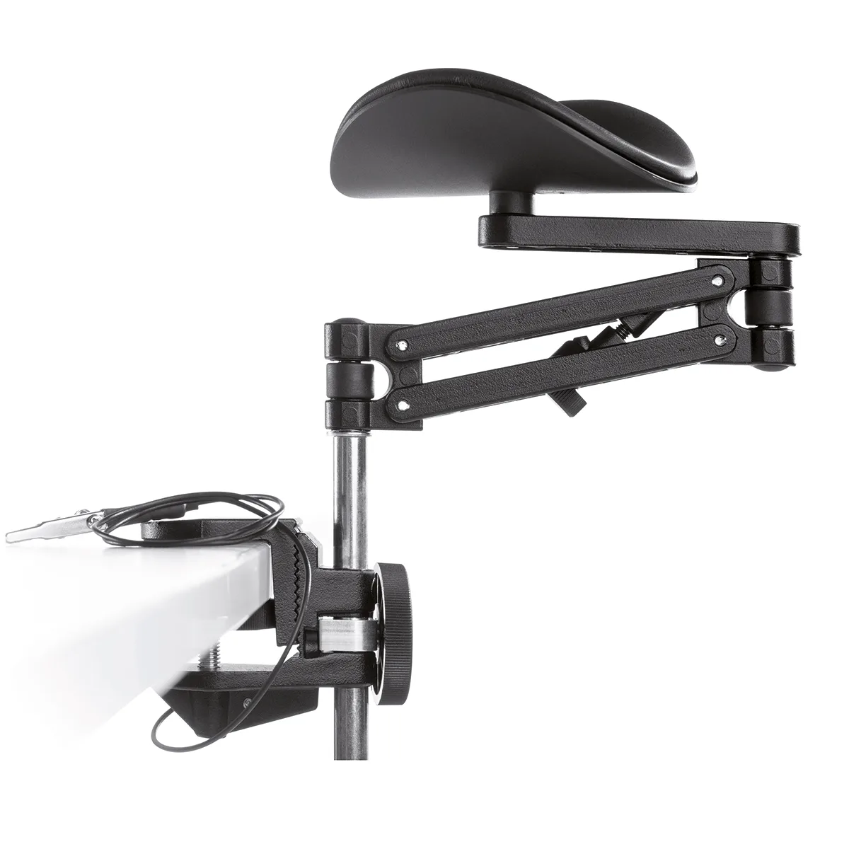 Les Ergorest sont très mobiles, légers et fonctionnels, et leur installation est très rapide par l’intermédiaire d’un système de pince de serrage sur le plan de travail. Chaque Ergorest est articulé sur 3 points : à la base, à la jonction du 1er et du 2e segment de bras et au niveau de la gouttière repose-bras.